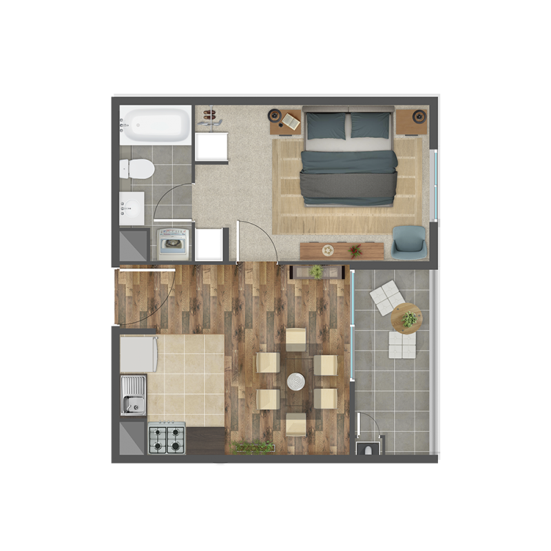 1 Dorm. 1 baño