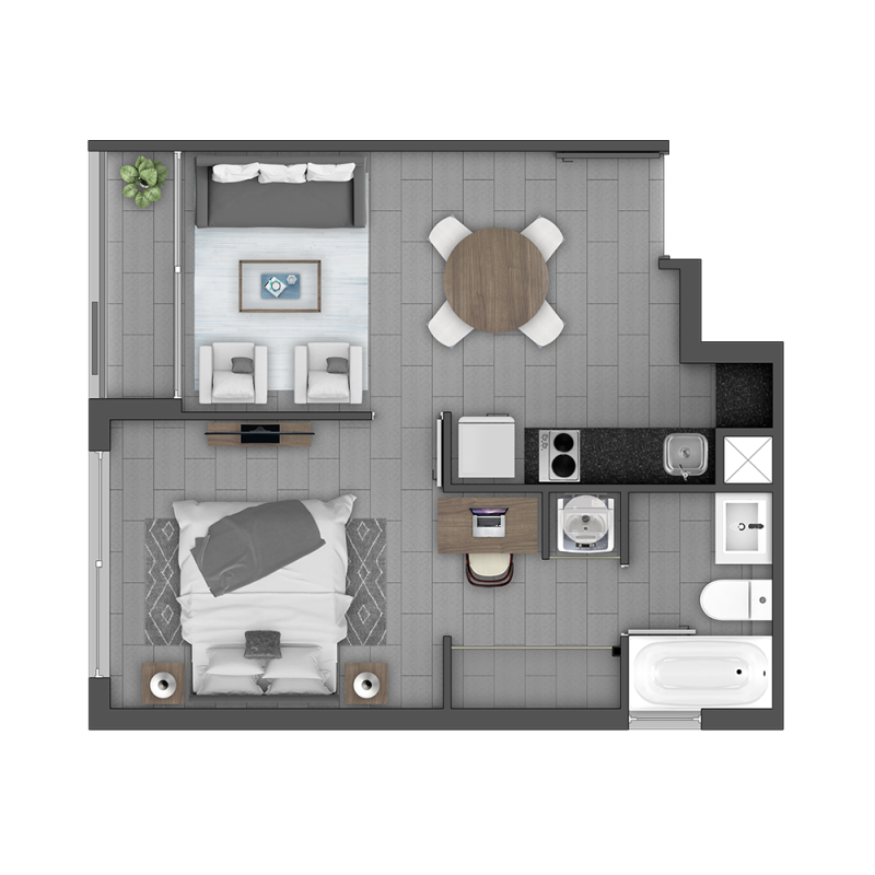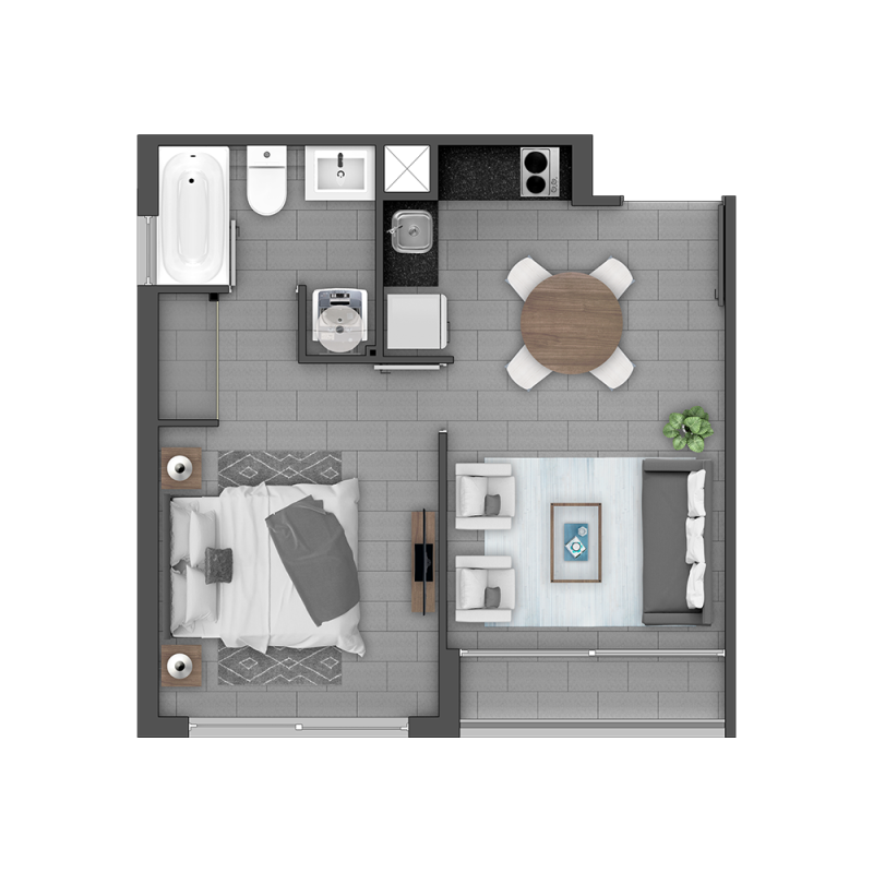 1 Dorm. 1 baño